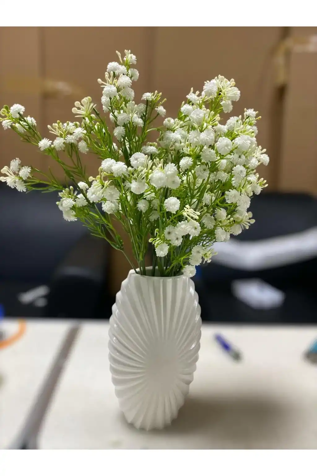 - 17 cm boyutundaki bu vazo, modern ve şık tasarımıyla her türlü dekorasyona kolayca uyum sağlar.; - Üç demet yapay çiçek ile zenginleştirilmiş bu set, mekanınıza doğal bir güzellik katar.; - Beton malzemesi sayesinde dayanıklılığı artırılmış ve uzun ömürlü kullanım sunar.; - Hediye olarak tercih edebileceğiniz bu vazo seti, sevdiklerinize anlamlı bir hediye seçeneği sunar.
