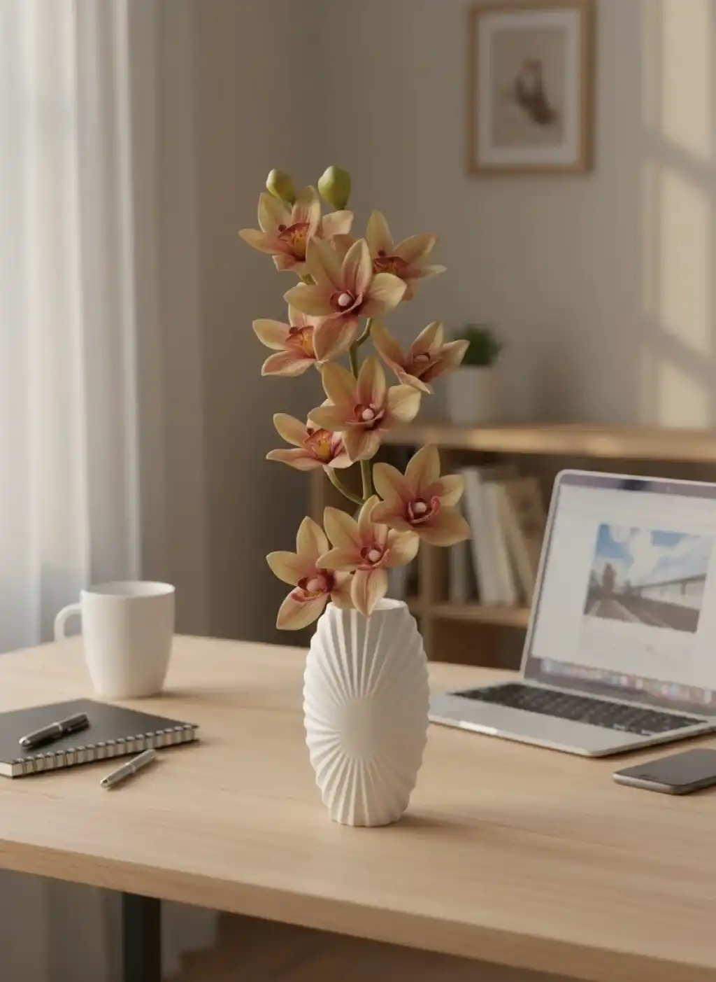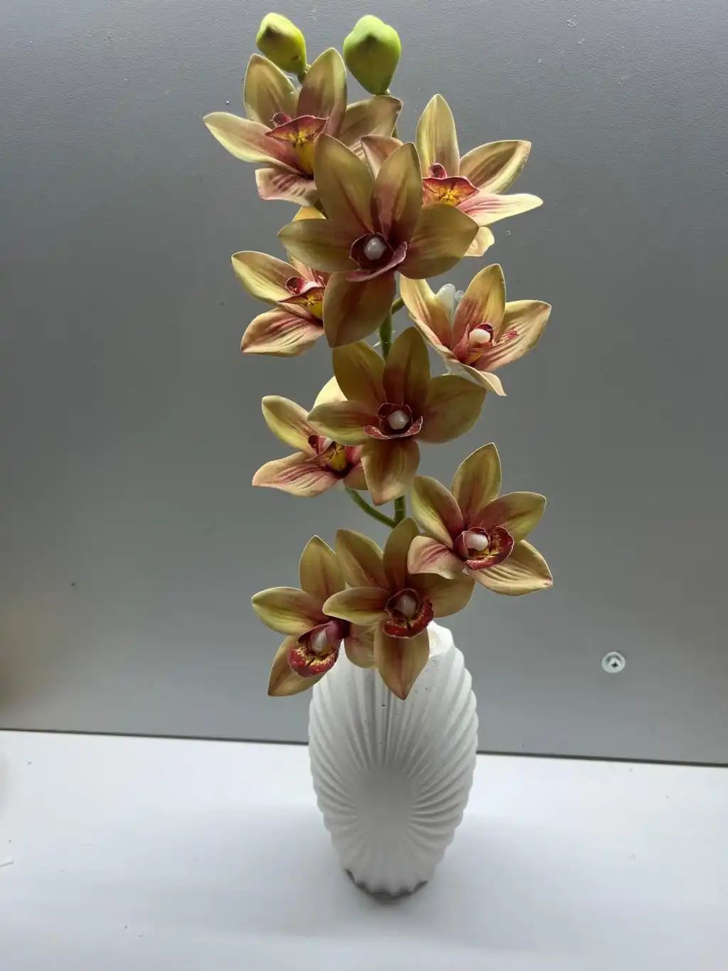 Yapay Orkide, doğal orkide çiçeğine benzer görünümüyle iç mekanlara şıklık katan bir dekorasyon ürünüdür. Açık kahve rengi tonlarıyla modern ve şık bir atmosfer yaratır. 46 cm boyuyla ideal bir yüksekliğe sahiptir. Yapay Orkide, bakım gerektirmez ve uzun ömürlüdür. Her mevsim fresh ve canlı bir görünüm sunar.