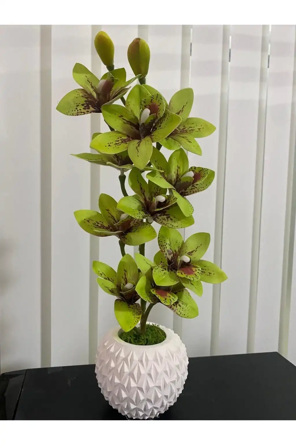 42 cm boyutundaki yapay orkide saksısı, hem dekoratif hem de pratik bir kullanım sunar.; 31 ila 45 cm arasında değişen yükseklik seçeneği sayesinde farklı mekanlara kolayca uyum sağlar ve estetik bir görünüm kazandırır.;